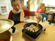 鉄板料理を簡単に作って、プログラムの振り返りをしよう!と作り始めたのですが、 たこ焼き…あ!焦げてる!くっついちゃう!と、作るのに時間がかかり、話し合いの 時間が短くなってしまいました。